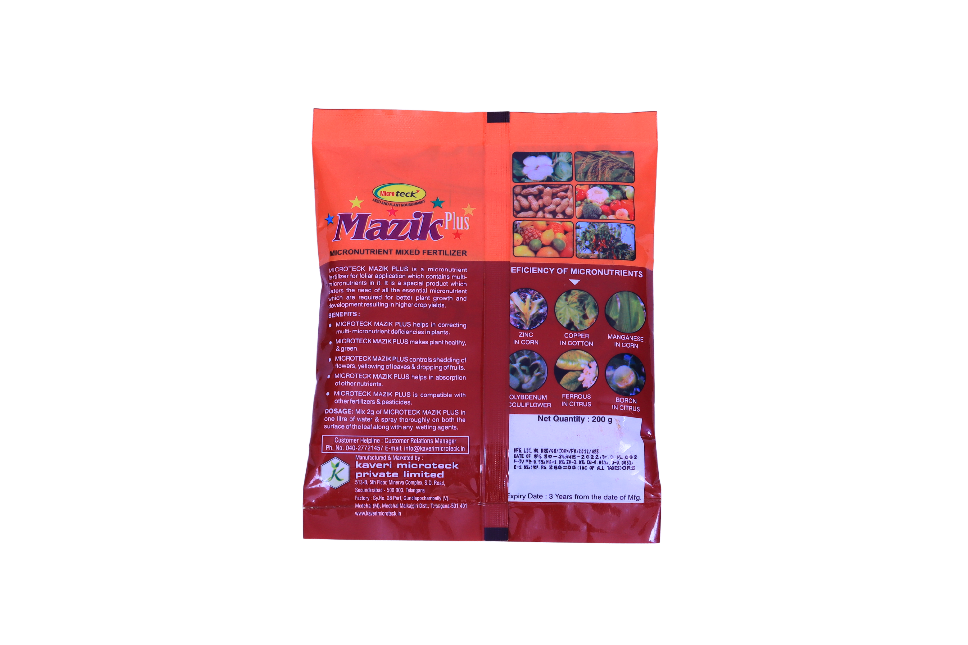 IT IS A MICRONUTRIENT FERTILIZER FOR FOLIAR APPLICATION WHICH CONTAINS MULTI-MICRONUTRIENTS IN IT. IT IS A SPECIAL PRODUCT WHICH CATERS THE NEED OF ALL THE ESSENTIAL MICRONUTRIENT WHICH ARE REQUIRD FOR BETTER PLANT GROWTH AND DEVELIPMENT RESULTING IN HIGHER CROP YIELDS.